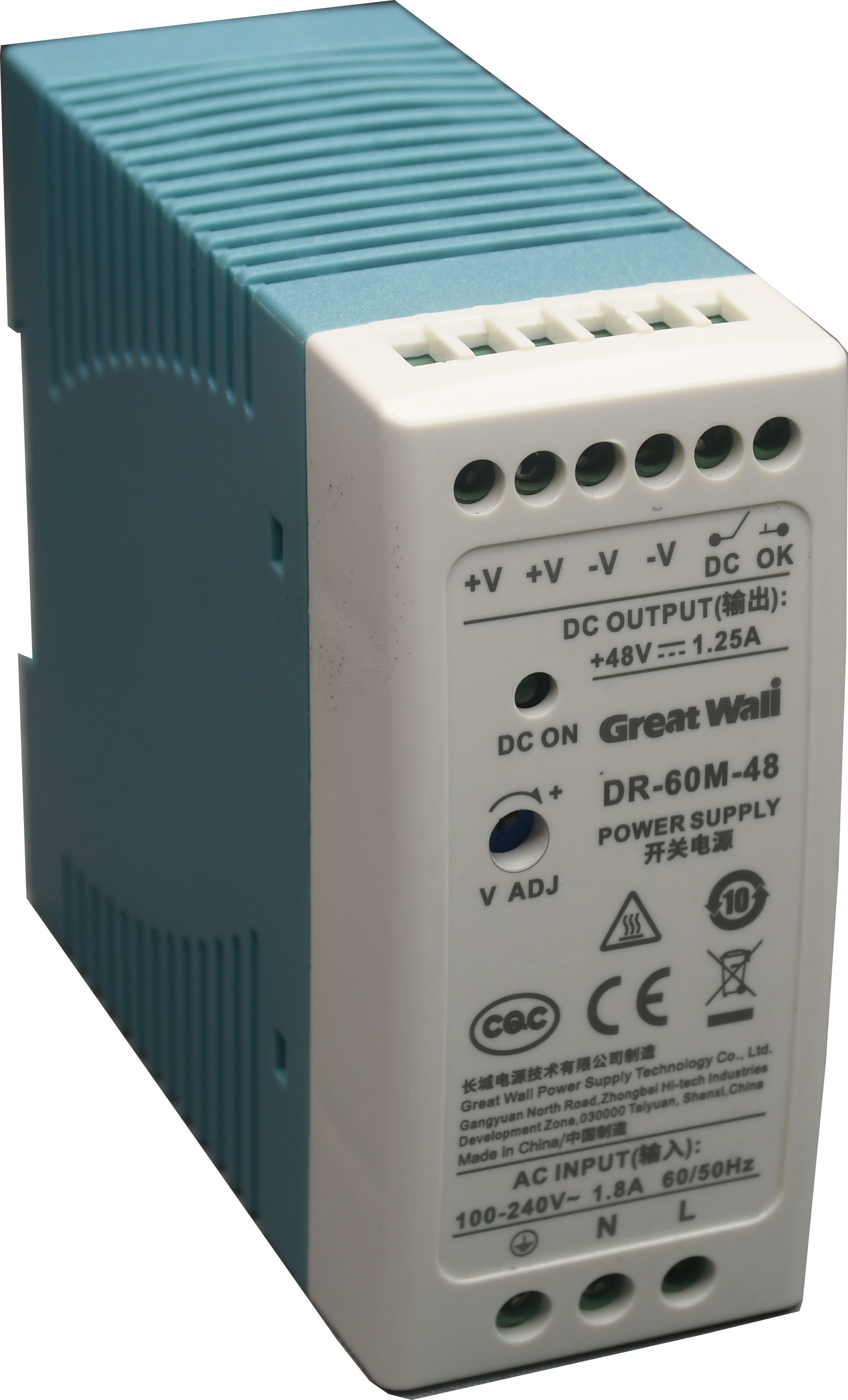 GW-DR60M-48 | AC/DC | 85-264VAC | 120-370VDC | 60 | 48 | 1.25 | 单端反激 | / | 88.5 | 90x100x40 | -20℃~+70℃ | CE/CQC/CB | 导轨 |